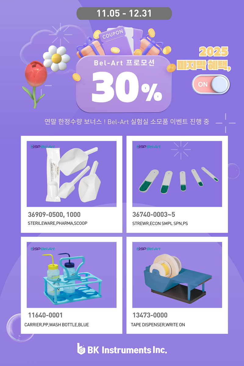 BKI Golden Week 릴레이 할인 프로모션 110년 제조역사 미국 Bel-Art!비케이인스트루먼트에서 할인 특가로 만나보세요!<배너를 클릭하면 이벤트 상품페이지로 이동합니다>